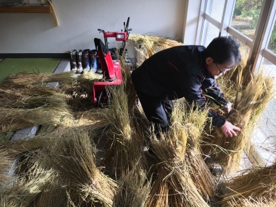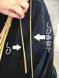このわらの内部のきれいな部分だけを残して、一本一本丁寧に「しび」をとっていきます。