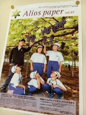 アリオスペーパーの今月号に川前小中学校の全児童生徒と、葡萄の里の植野さんが載っています!
