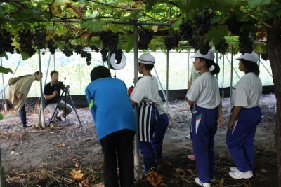 撮影は植野さんの育てたきれいな葡萄がたわわに実るハウスで行われました。
