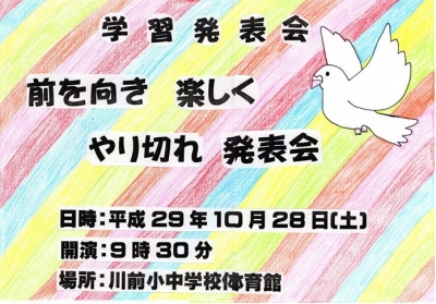 10月28日、学習発表会と、川前中学校創立70周年式典が行われました。