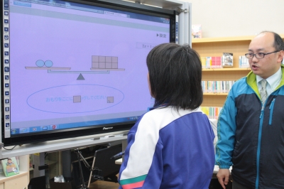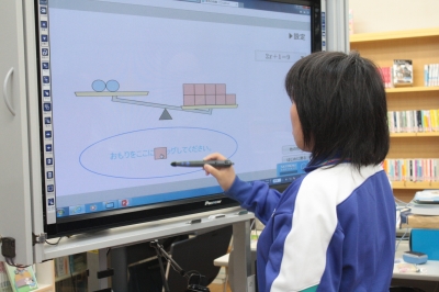 本時は等式の性質を理解するために、ICT教材である電子黒板を使用しました。
