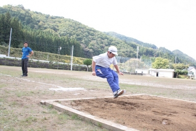 お手本を参考に、踏み切りや跳び方の練習を行いました。