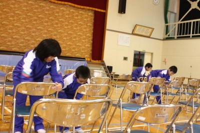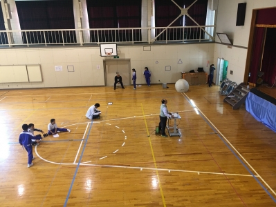 午後は体育館で、小学生による開幕宣言と中学生による閉幕宣言の練習。