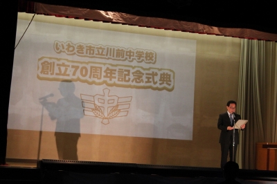 記念式典では川前中の70年間の歩みを校長先生のお話と、映像で振り返りました。