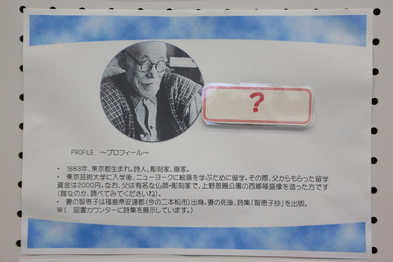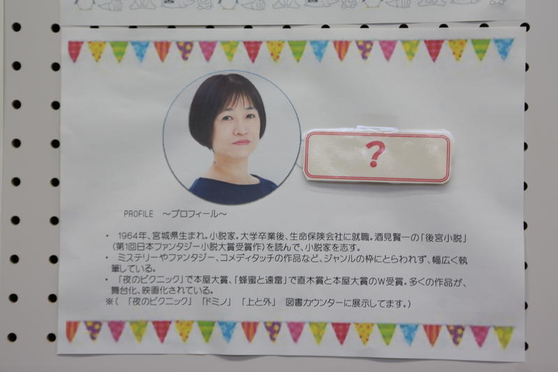そして、先週司書さんがパソコンに向かって作っていたものは・・・。そう、「私は誰でしょう」コーナーです。今回は特別に問題を掲載しますので、皆さんも考えてみてください。