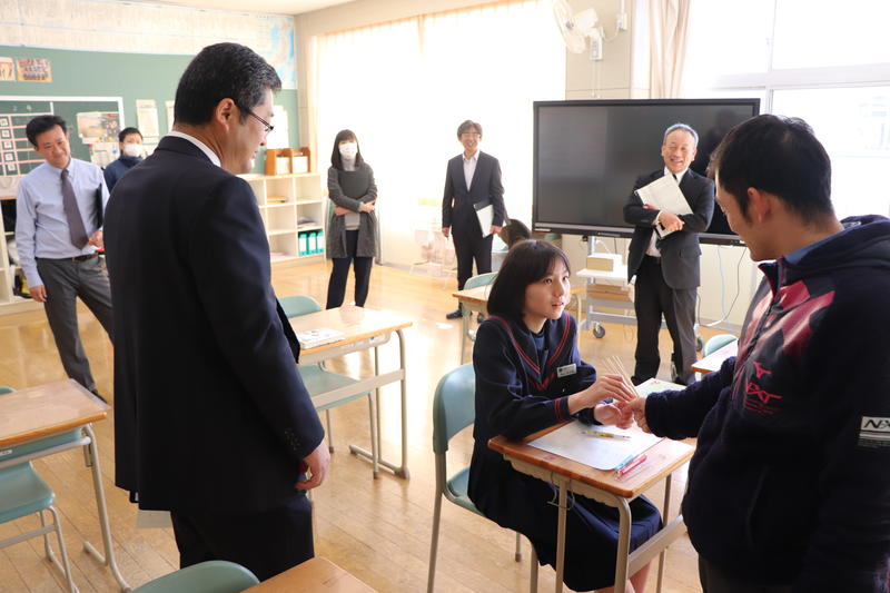 2月28日(金)、第2回学校評議員会を行いました。評議員の皆様には、会議の前に授業参観もしていただき、本校児童生徒の活動の様子、頑張りの様子をご覧いただきました。