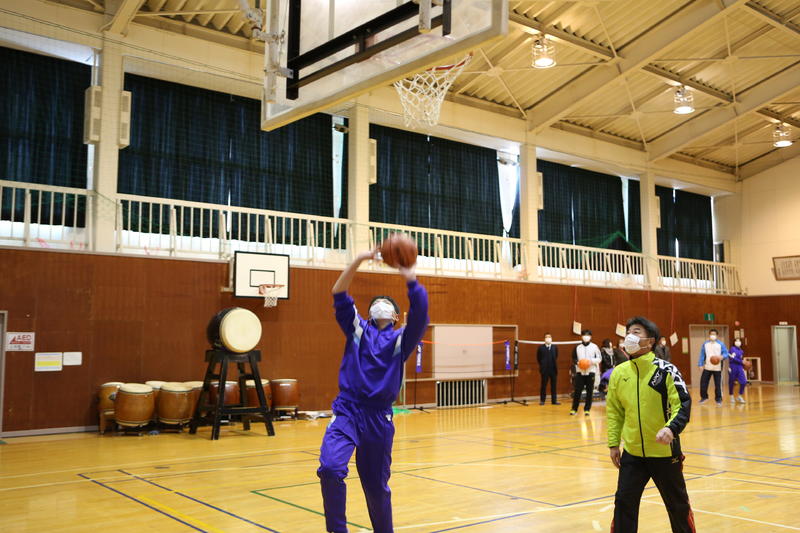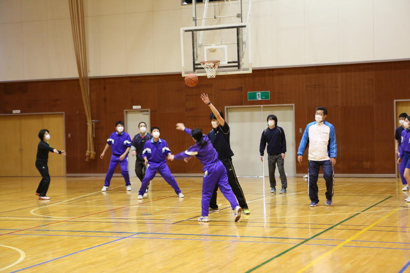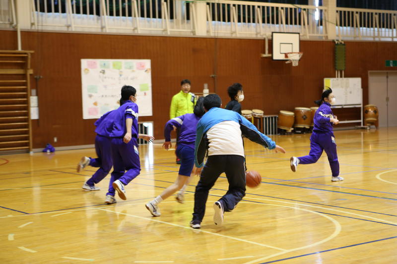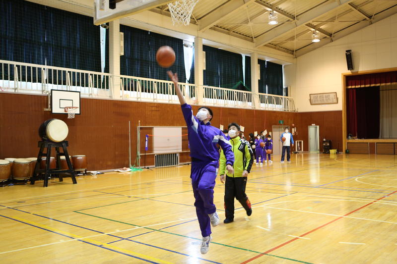 昨日28日に授業参観を行いました。今年度最後の授業参観は、保健体育を全学年で行いました。体育館でバスケットボールを行いましたが、本校の全校生徒は6人。バスケットボールは5対5でゲームを行います。ということは、そう、先生方も参加します。生徒チームと校長先生を含む先生チームでの対戦です。体育担当の先生が、この日に備えて生徒達を鍛え上げてくれていました。そのため、とても白熱した試合になりました。