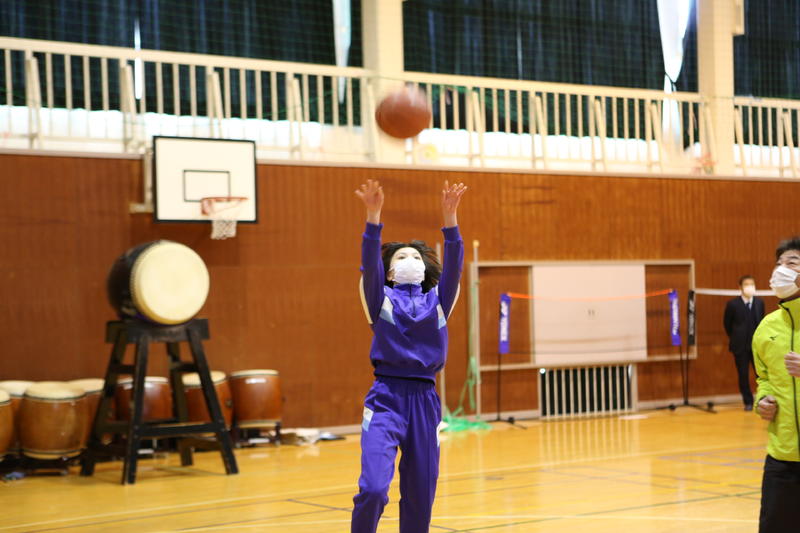 試合前に、ウォーミングアップでランニングシュートを行いました。はじめの頃より上手になっている姿にびっくり!