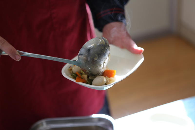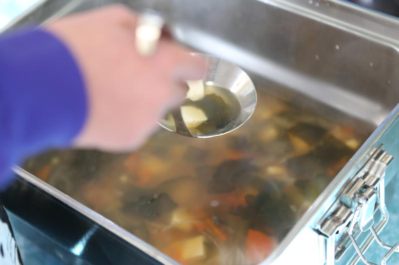 今日の給食は「中華丼」。育ち盛りの生徒達にとって、ボリューム満点で放課後の部活動まで必要なエネルギーが十分取れますね。しかも桶売の給食はいつもほっかほか!