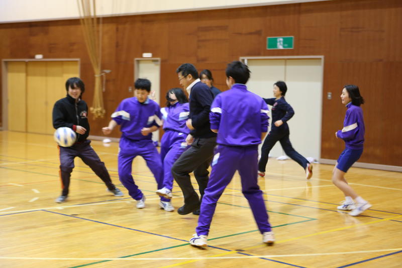 次は、バスケットボールです。生徒から先生方に、宣戦布告がありました。