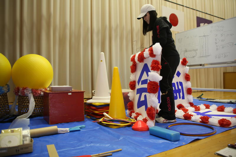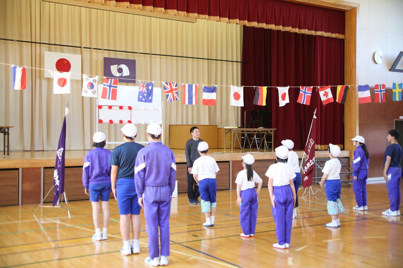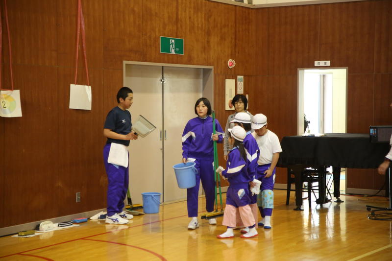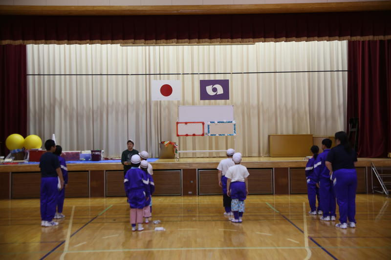 小学校の体育担当の先生から、紅白に分かれてチームで作業をすることや割り当てについてお話がありました。