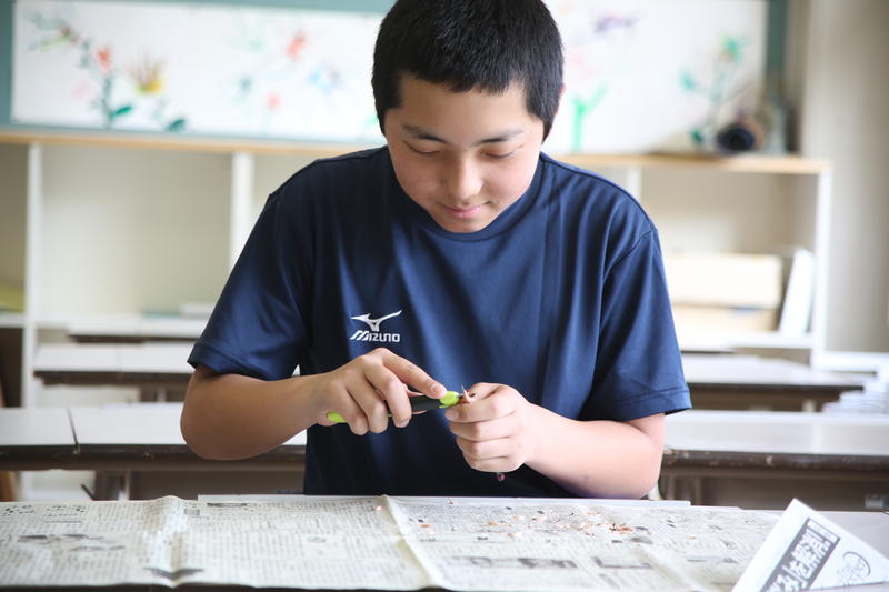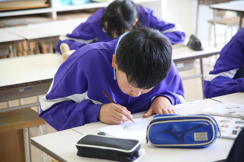 陸上大会を2週間後、中体連を1ヶ月後、そして運動会を3日後に控え、生徒の活動は「動」の部分が多くなります。しかし、「静」の部分もしっかりとがんばっています。普段の授業もそうですが、今日は美術の授業で作品制作をがんばりました。
