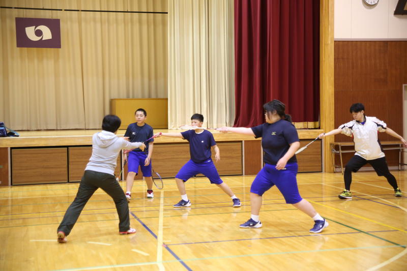 2019年4月27日 12時08分バドミントン春季大会を明日に控え、修学旅行で疲れた体に鞭を打つかのように練習をがんばりました。卒業生も参加してくれてて、気合いの入った練習をしました。