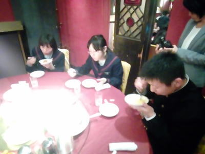 机いっぱいに並んだ料理に生徒達は圧倒されています