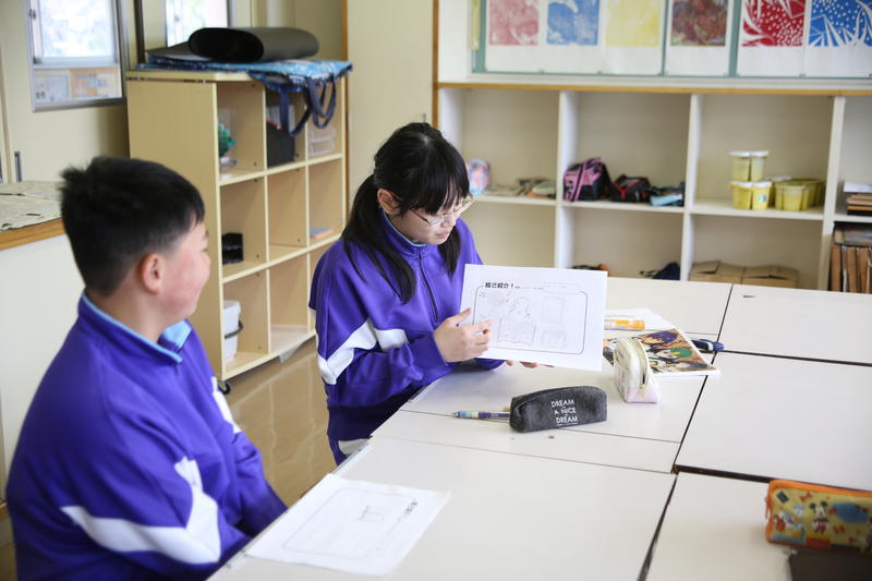 紹介するポイントを、皆で話し合って3つ決めて、そのポイントについて文字を使わず絵で表現します。皆真剣に取り組んでいました。