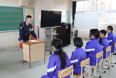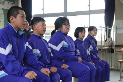 いわき中央警察署川前駐在所の佐藤克哉様をお招きして,自動車における事故の危険性について中学生に考えさせる講話をいただきました。