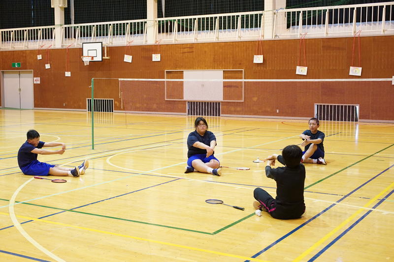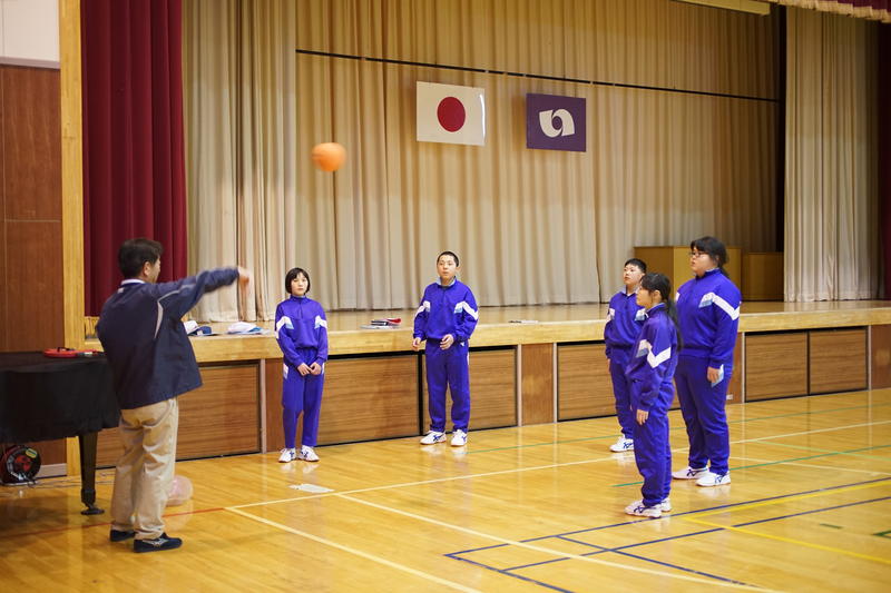 保健体育の授業では、体力作りやハンドボール投げを行いました。どのように投げるとボールがよく飛ぶか、失投する原因について詳しく学んで実践しました。