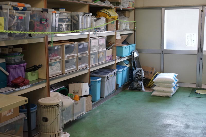 写真は普段は職員以外は入らない部屋です。廃棄物や様々な道具が置いてある場所です。汚くしていても外からは見えない所なのですが、いつもきれいに整理整頓してくれています。