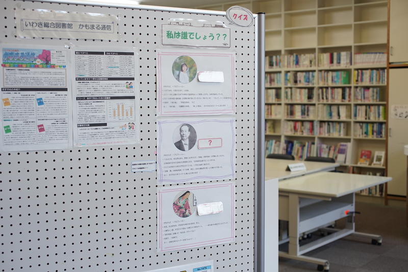 本校の図書室に、学校司書さんによるクイズが出されました。著名人の人名を当てるクイズです。タブをめくると答えが見える仕組みです。様々な角度から、生徒の知的欲求を高める工夫がされています。