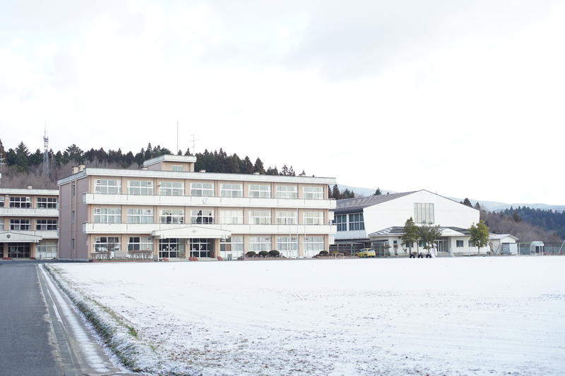 桶売地区は氷点下の朝となりました。昨晩降った雪が、校庭に白い絨毯を敷いたようになっています。キュッと気が引き締まりました。