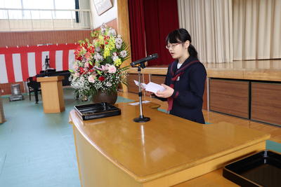 卒業した3年生も参列し、花束を贈呈してくれました。