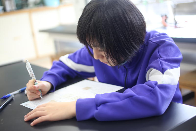 1年生の理科では、市販のテストを用いて1年間の振り返りを行いました。