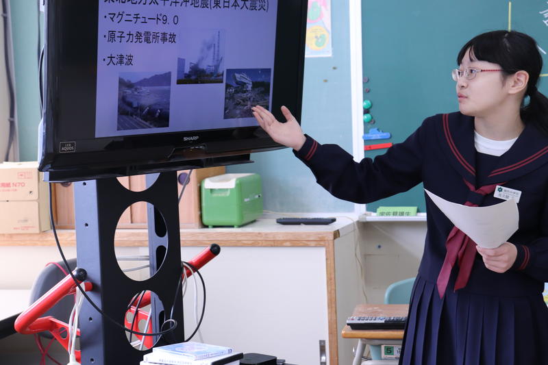 本日、東日本大震災に係る集会を行いました。校長先生からお話をいただき、黙祷を捧げました。
