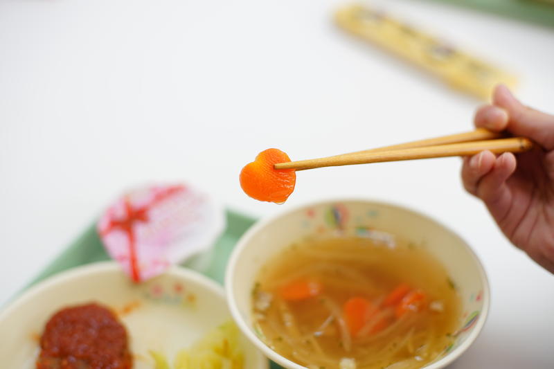 調理員さんが、一つ一つ丁寧に型抜きをしてくれた、沢山のハートが入っていました。