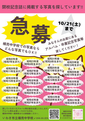 桶売中学校では、閉校に向けて「閉校記念誌」を作成中です。