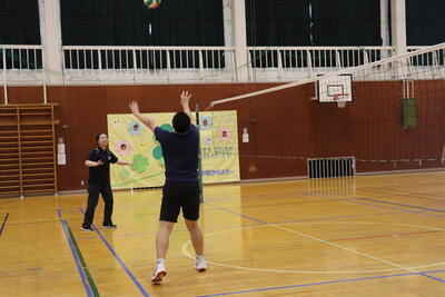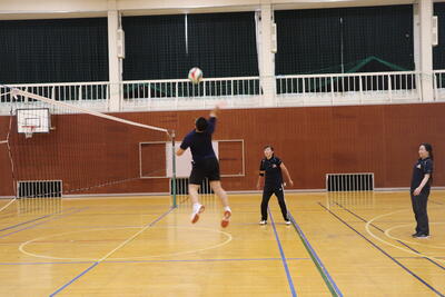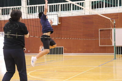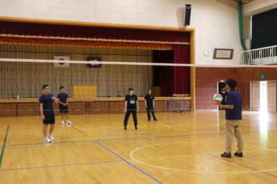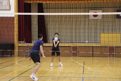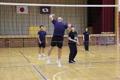 生徒数が少ない本校では、教員も混じってバレーボールの特訓を受けておりました。