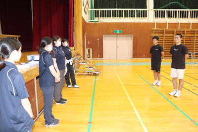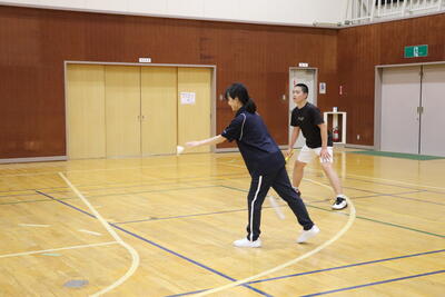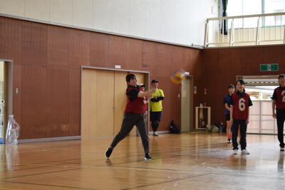 ソフトボールを終えた生徒が、急遽バレーボールにも参加!