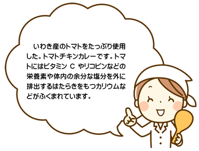 アツアツのトマトチキンカレーはとってもおいしかったです。