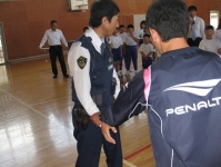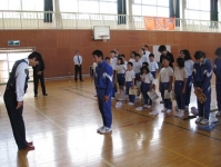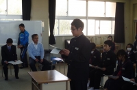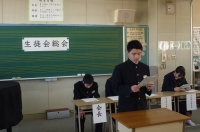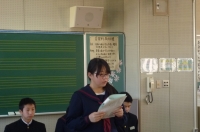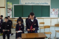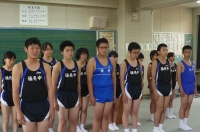 学校長からの激励の後、生徒一人ずつ目標を述べ、大会への決意表明をしました。