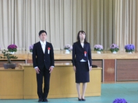 続いて新2年生の矢内さん、新3年生の比佐さんが、今年度の抱負の作文発表を行いました。