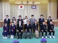 学校長あいさつに続き、松本生徒会長より、校章の由来についての説明、歓迎の言葉が述べられると、新入生の表情がとても明るくなりました。