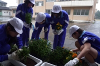 全校生で花植えを行いました。一人ずつプランターに土を入れ、花を植えました。これから技術の授業などを通して育てていきます。
