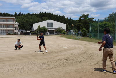 今度の日曜日に行われる川前地区球技大会に向けて、ソフトボールの練習に励んでいました。