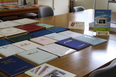 図書室には、歴代の卒業生の卒業アルバムが展示されています。