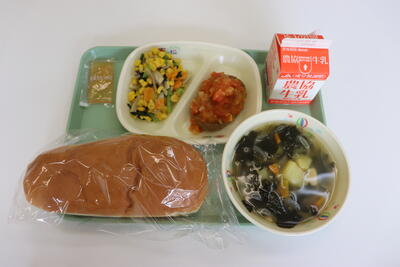 ハンバーグにかかっているトマトソースは、なんと調理員さんの手作り!!