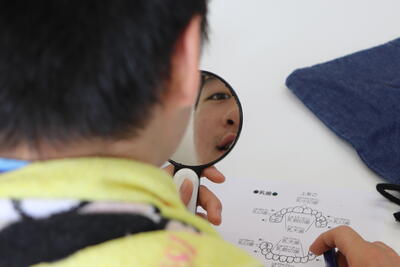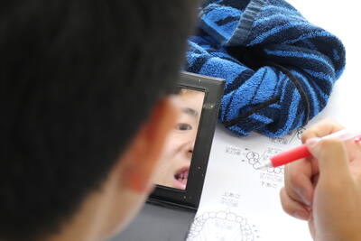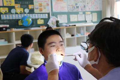 歯科指導では、恒例の染め出し。磨き残しがないかどうかをチェックします。