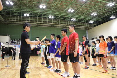 明日から始まるバドミントンの中体連に向け、激励会を行いました。