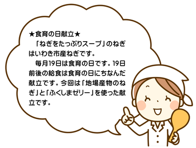 今日は、いわき市や福島県で作られた食材をたくさん使った給食でした!