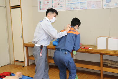 胸部圧迫の仕方、AEDの使い方、異物で喉を詰まらせた際の背部殴打法などなど、いざというときの対応のしかたを教えていただきました。