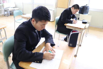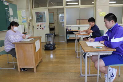 今週末に迫った検定試験に向けて、英語の先生とともに昼休みも学習に励んでいます。