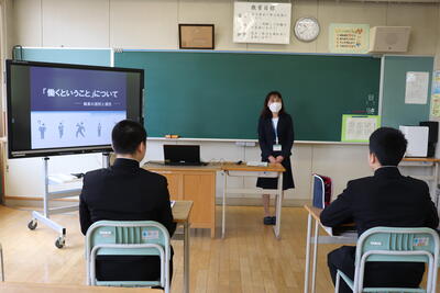 人はなぜ働くのか? 高校選びのポイントは? 企業が求める人材とは? などなど、興味深いお話を丁寧に説明していただきました。