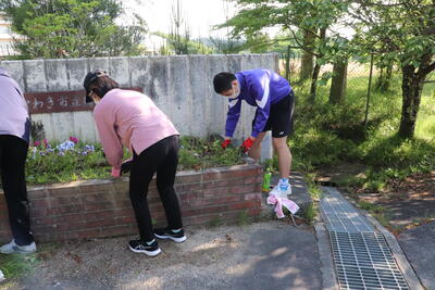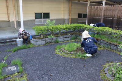 皆さん適宜水分補給を心がけつつも、恐るべき集中力で作業してくださいました!! 結果、校舎周りはとってもすっきりし、チーム桶売のパワーを感じました。