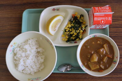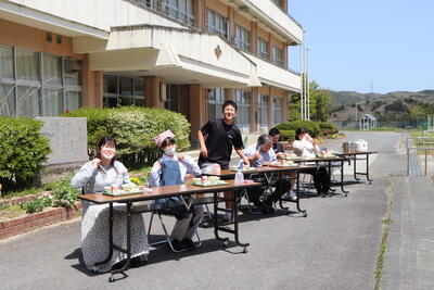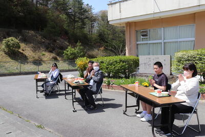 とっても澄み渡った青空の下、おいしい給食ごちそうさまでした!