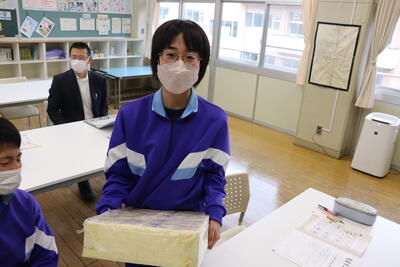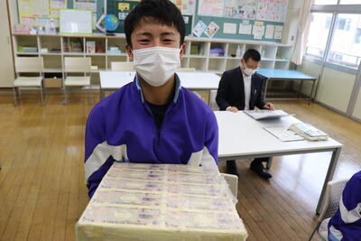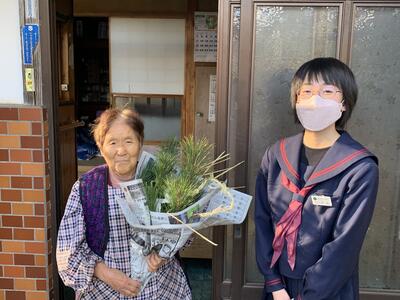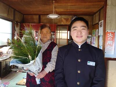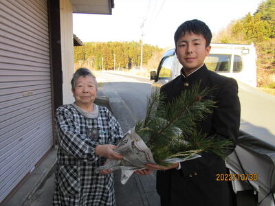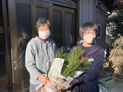 どこの御家庭も、中学生の訪問を喜び、嬉しそうに正月飾りを受け取ってくださいました。中学生とふれ合ったときの笑顔が印象的でした。訪問して良かったなあと思える時間でした。