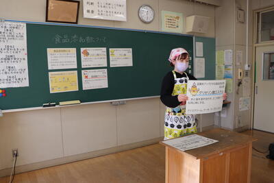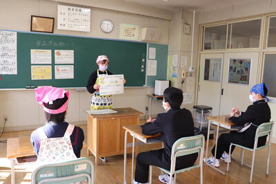 お隣の桶売小から栄養教諭の先生に訪問していただき、「食品添加物」について学びました。