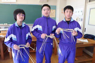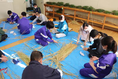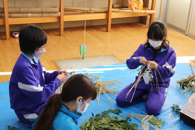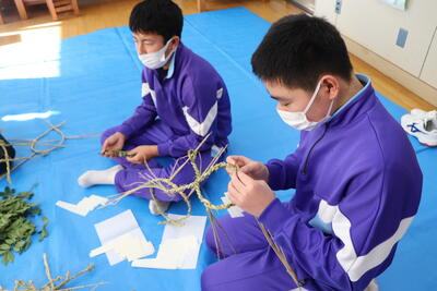 地域の方を講師にお招きして、正月飾り作りを行いました。今年は、小中合同で行います。